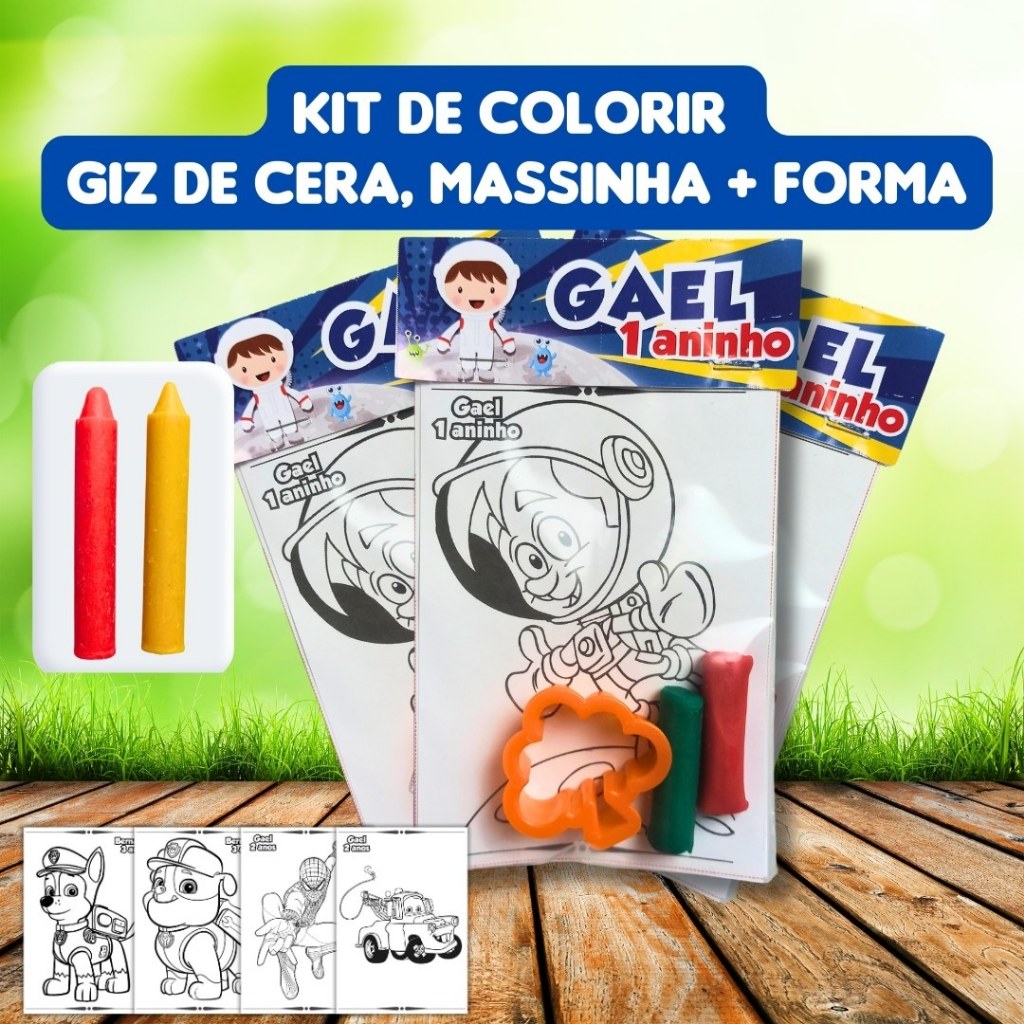 Kit de Colorir com Giz de cera massinha e forma - Lembrancinha personalizada