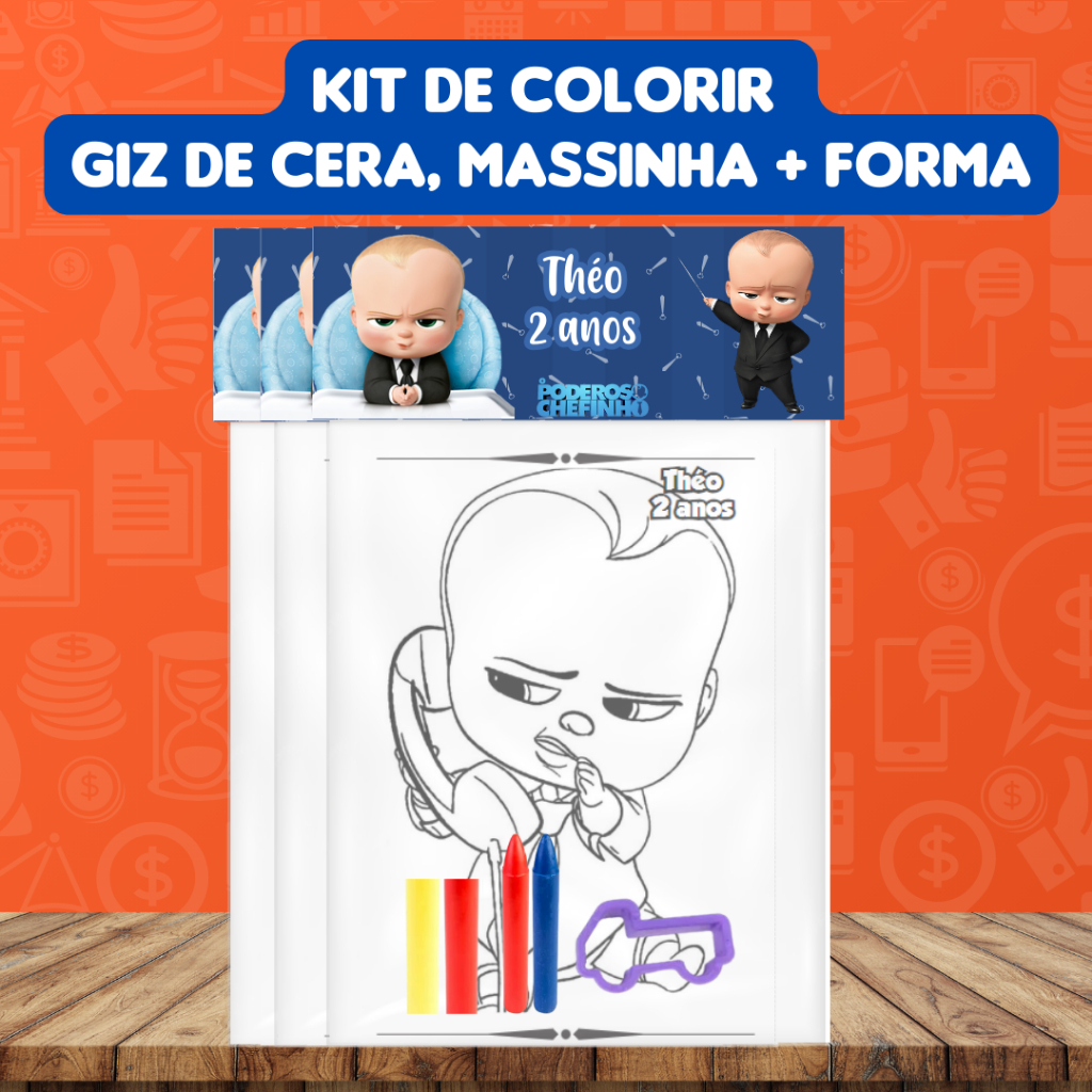 Kit de Colorir O Poderoso Chefinho com Giz de cera massinha e forma - Lembrancinha personalizada