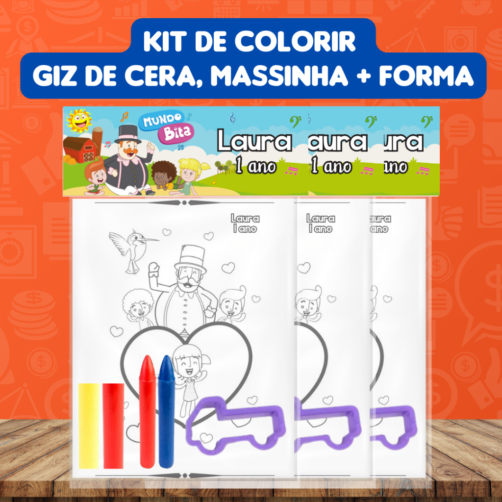 Kit de Colorir Mundo Bita com Giz de cera massinha e forma - Lembrancinha personalizada