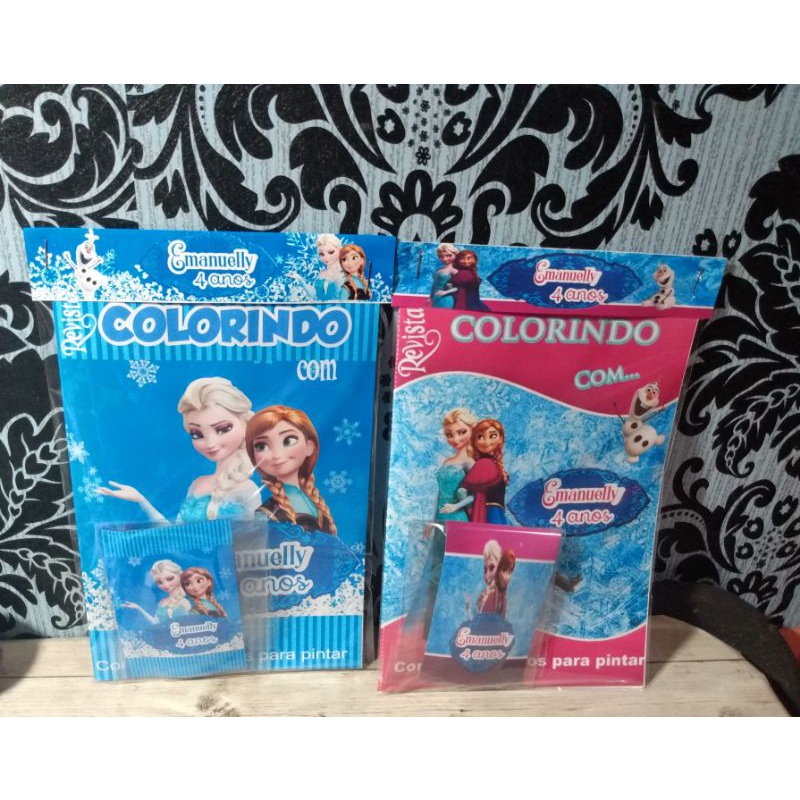 kit 5,10,15 revista de colorir personalizado com 2 giz de cera no saquinho , temos vários temas