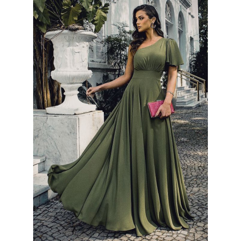 vestido festa madrinha em fluit 010 uma manga verde militar oliva fuscia rose gold terracota marsala serenity pink ou lilás sem brilho basico