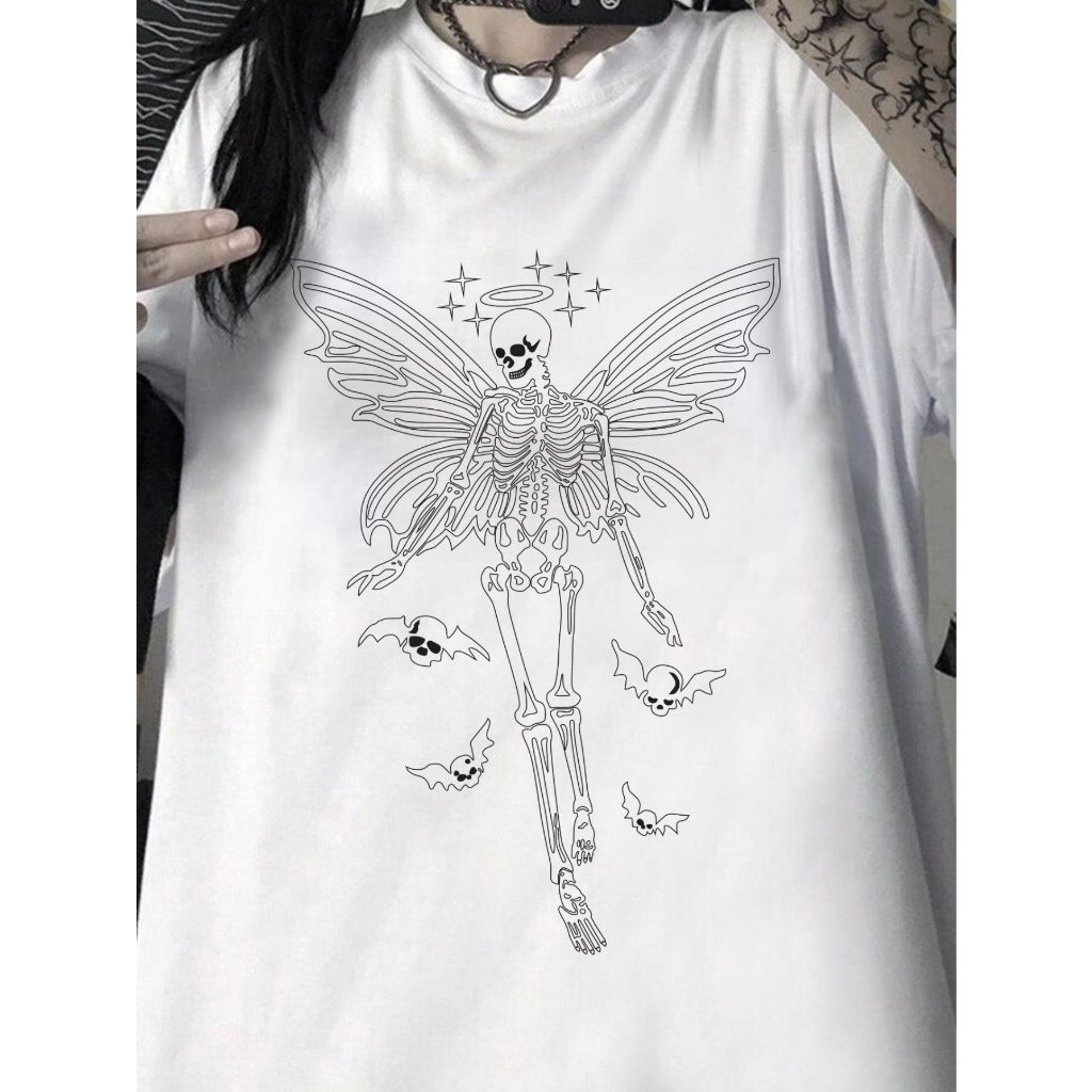 Camiseta Estampa Esqueleto Borboleta Masculino Feminina Poliéster