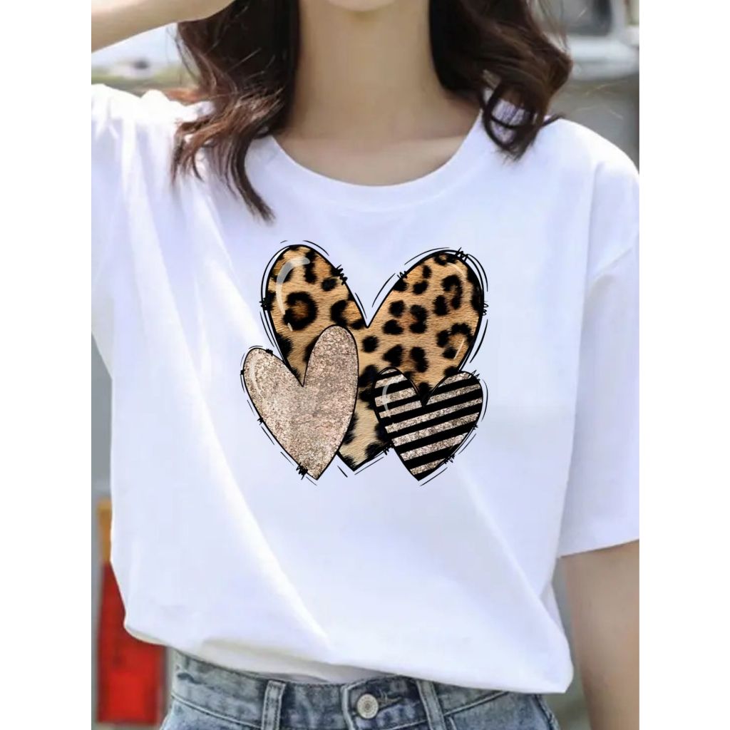 Camiseta Estampa Coração Animal Print Masculino Feminina Poliéster