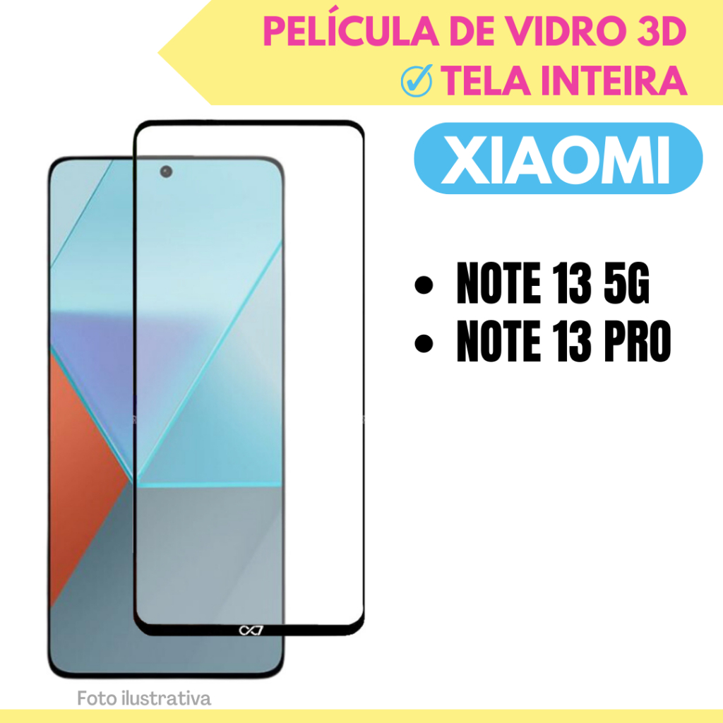 Película de Vidro 3D Protetor Para Xiaomi Redmi Note 13 5G / Note 13 Pro / Protetor de Tela Inteira