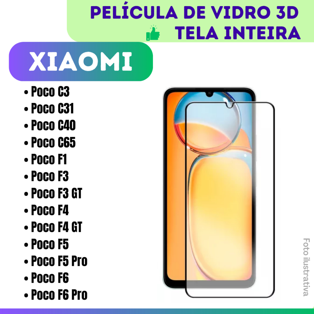Película de Vidro 3D Para Xiaomi Poco C3 / C31 / C40 / C65 / F1 / F3 / F3 GT / F4 / F4 GT / F5 / F5 Pro / F6 / F6 Pro / Protetor Cobre Tela Inteira