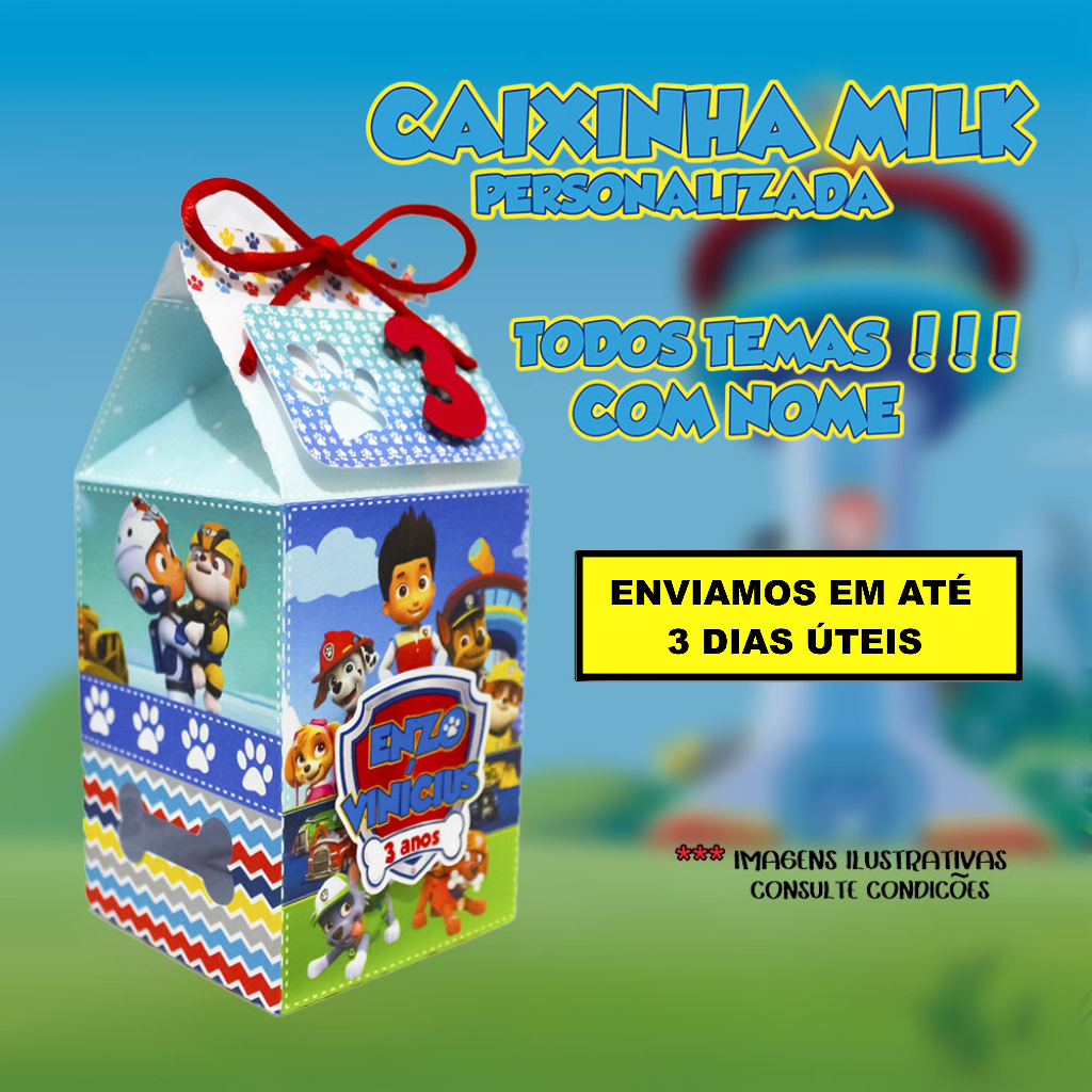 KIT 10 Caixinha Milk, Piramide, Bis, Bala Promoção Todos os temas Papel foto, Patrulha Canina, Bolofofo, mickey, poderoso chefinho, masha e urso, safari, fazendinha