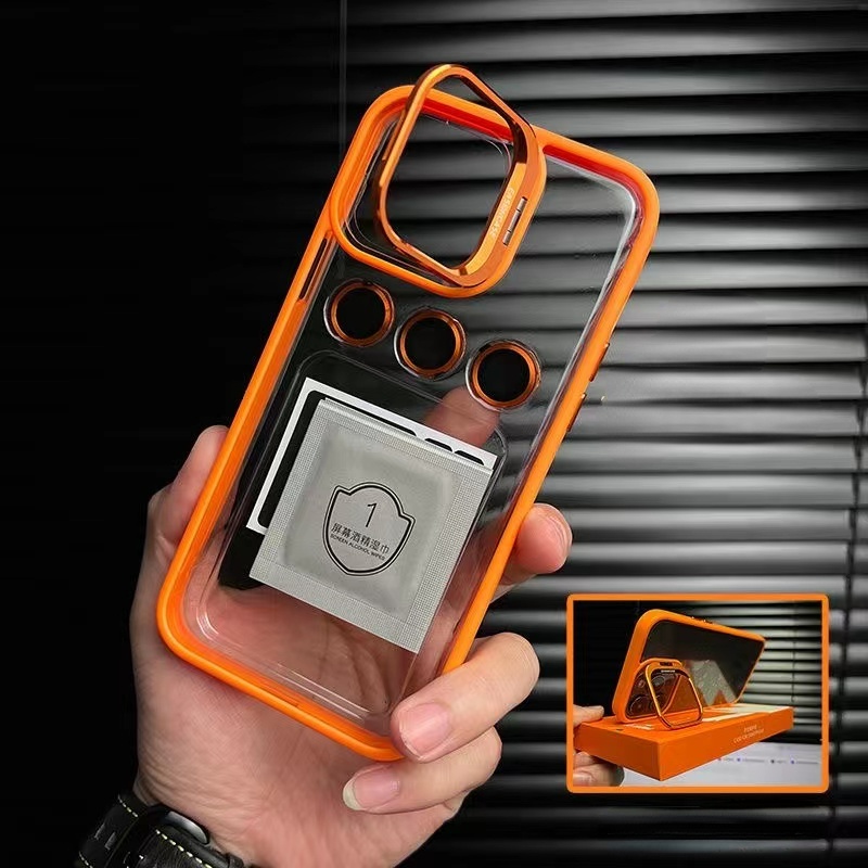 Liga Acrílica Transparente De Alumínio Com Suporte Embutido , Película Para Lentes , Caixa Telefone À Prova De Choque Adequada iPhone 15 14 13 12 11 Pro Max