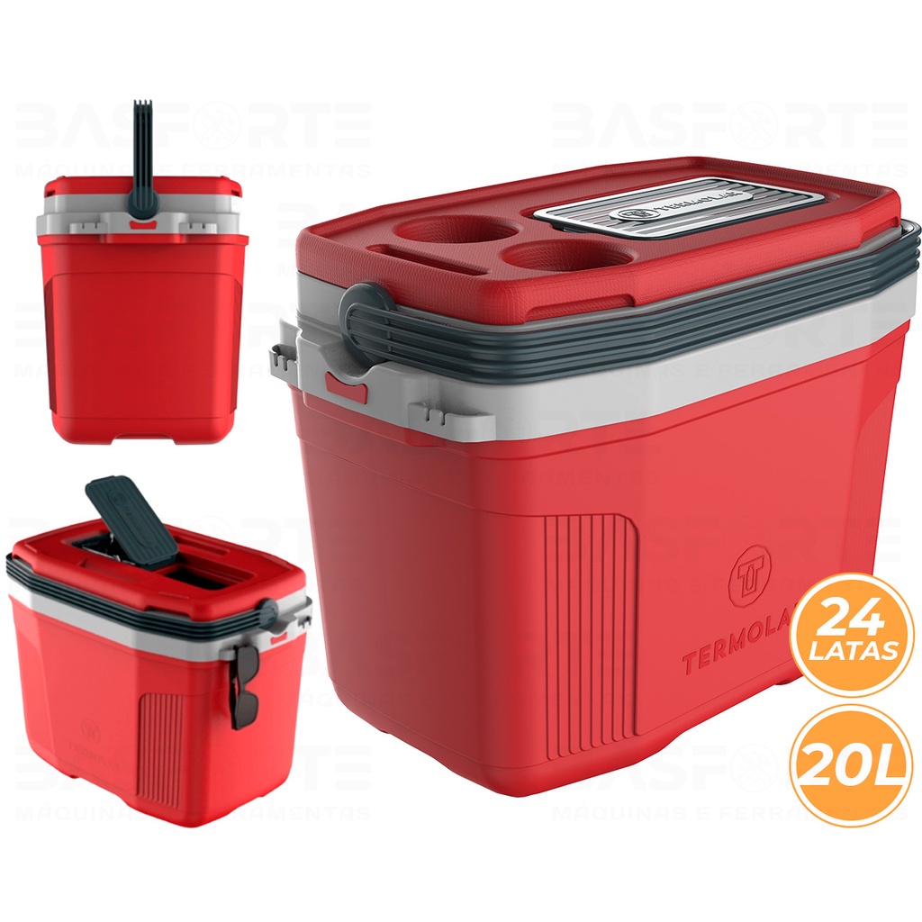 Caixa Térmica Cooler Termolar Suv 20 Litros Pesca Praia Camping Acampamento Com Alça Vermelha