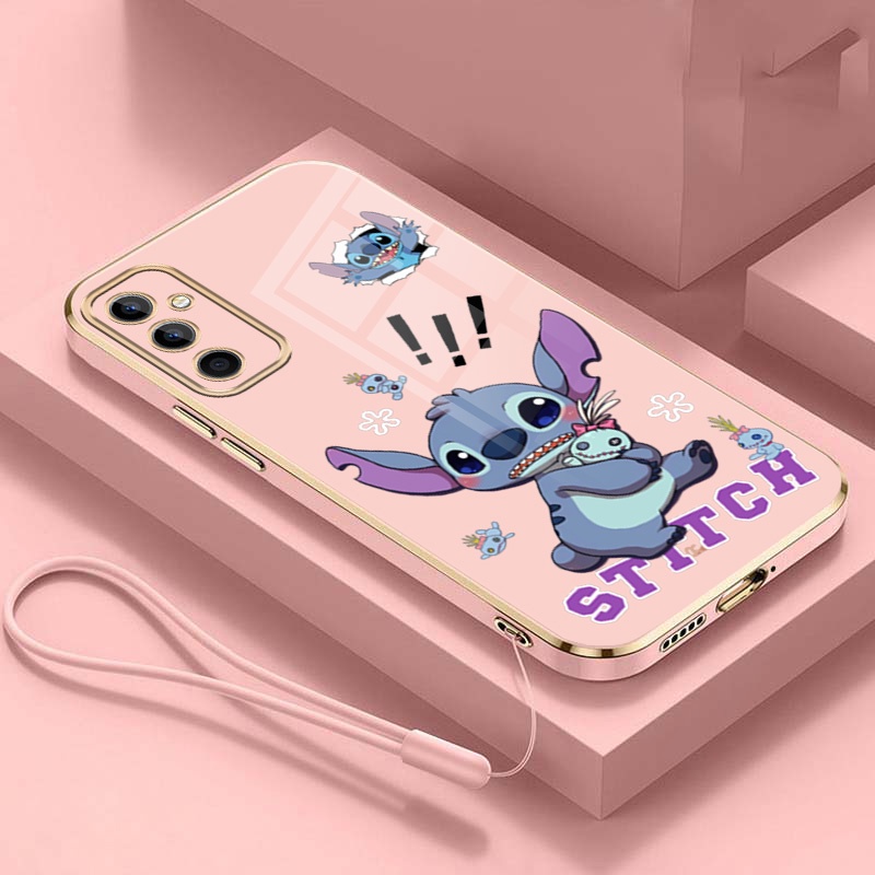 Capa Para Samsung Galaxy S21 FE S20 S23FE Cute Blue Stitch Pink Angel Love Heart Lanyard Macia À Prova De Choque Telefone Tpu