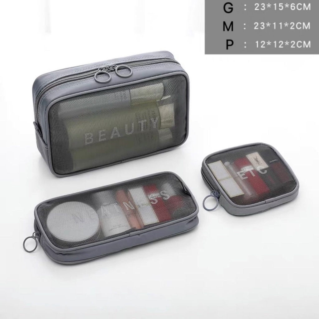 Kit De 3 Bolsas Necessaries Multiuso Tecido De Malha Transparente Para Viagem