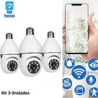 Kit 3 Câmera segurança wifi ip sem fio 360 com encaixe lampada bocal aplicativo yoosee ptz full HD