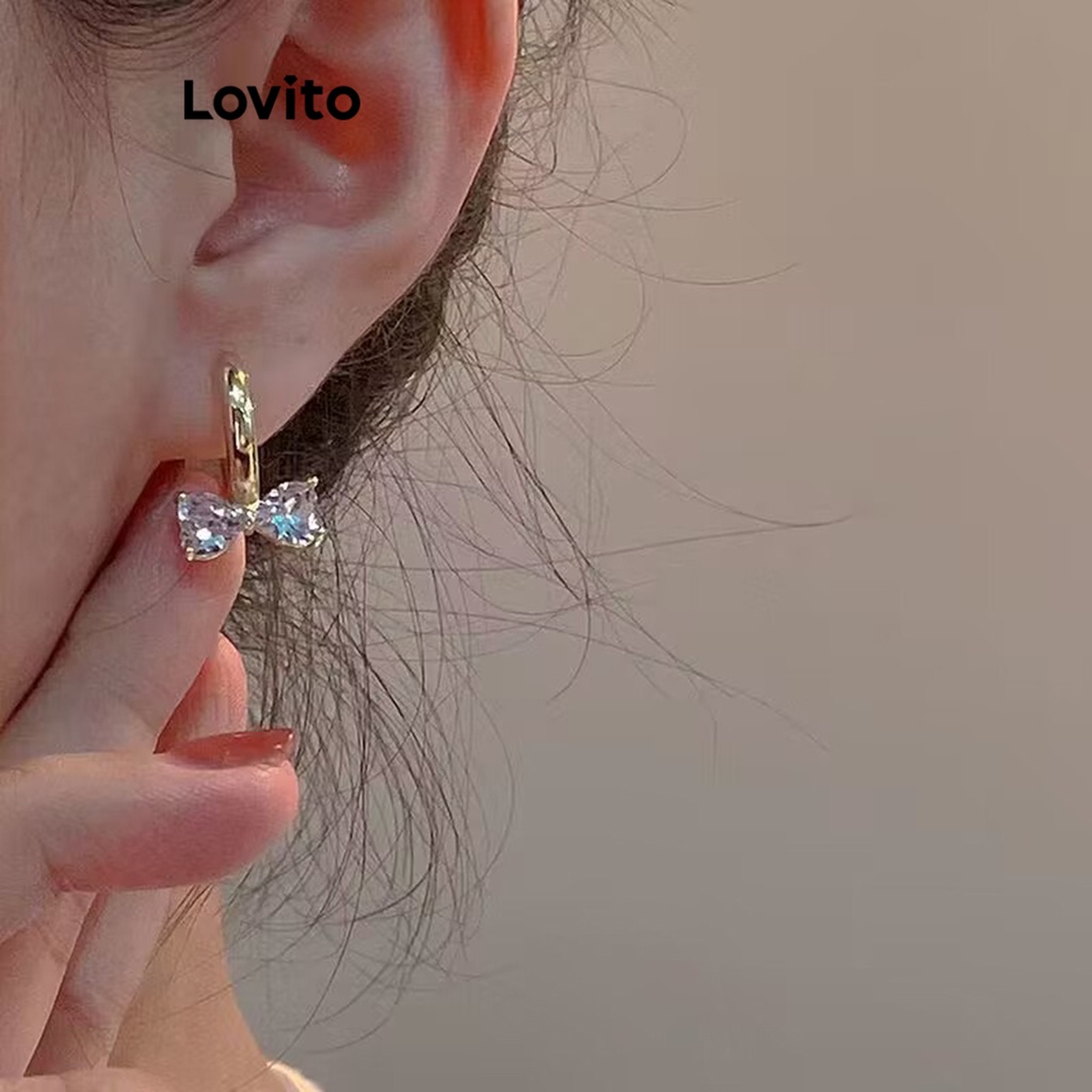 Lovito Brincos Casuais De Strass Com Laço Liso Para Mulheres LFA08101 (Ouro)