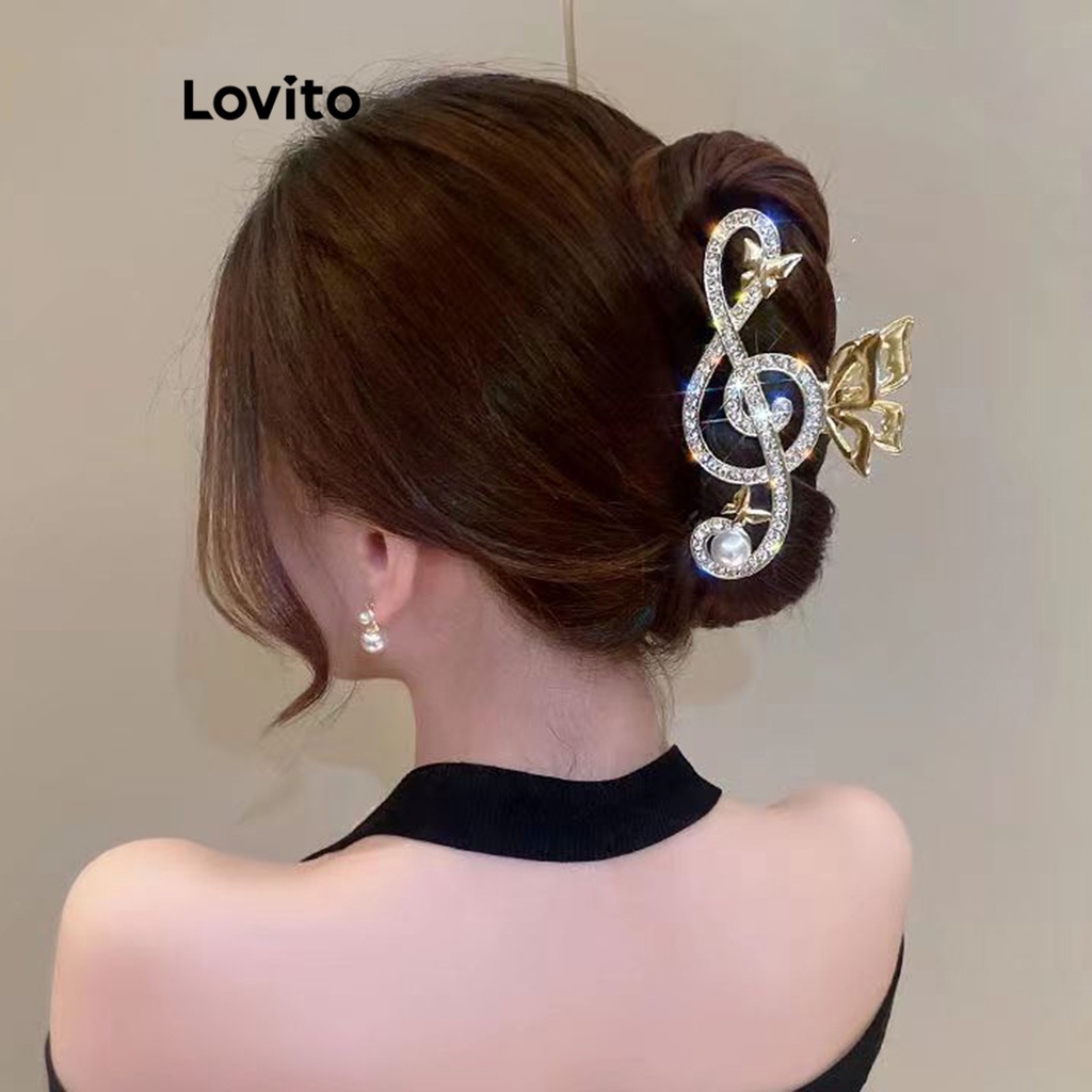 Lovito Presilhas de Cabelo com Borboleta de Pérolas e Strass para Mulheres LFA04142 (Dourado)
