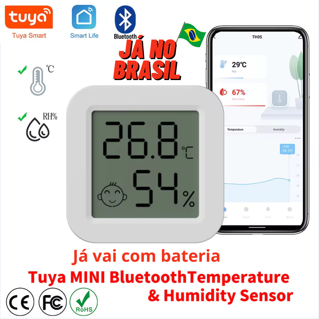 Sensor De Temperatura E Umidade Smart Inteligente Alexa Comando de Voz Bluetooth TUYA SmartLife