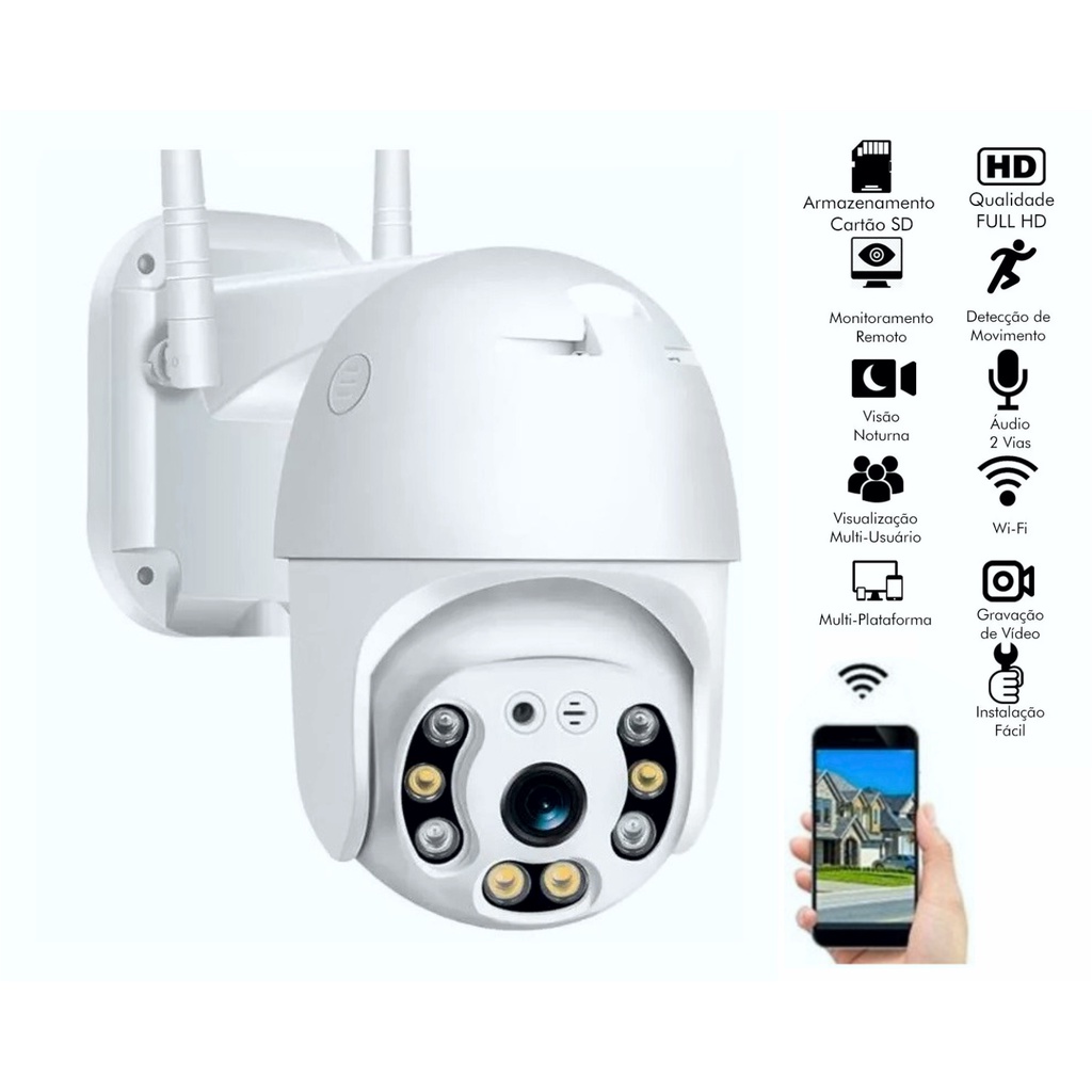 Câmera IP Rotativa Speed Dome a Prova D'Água Externa Interfone WiFi Infravermelho Full HD 1080p