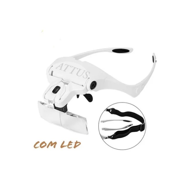 Lupa Estética Cabeça Led Óculos 5 Lentes Luz Dentista Reparo Branco