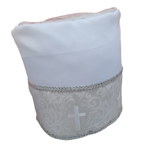 Ekete / Filá / Equete / Gorro Umbanda Candomblé de JACQUARD ALTO PRATA COM CRUZ