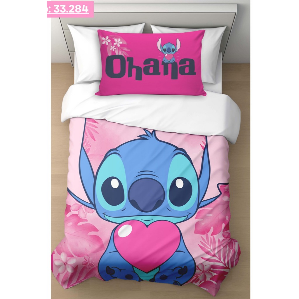 Kit Jogo de Lençol Infantil Colcha Solteiro 2 Peças Menina Menino Lilo Stitch Casa Decoração
