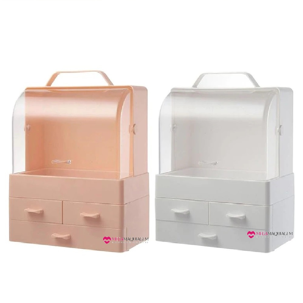Caixa Organizadora Maleta de Maquiagem com Alça e 3 Gavetas Acrílico