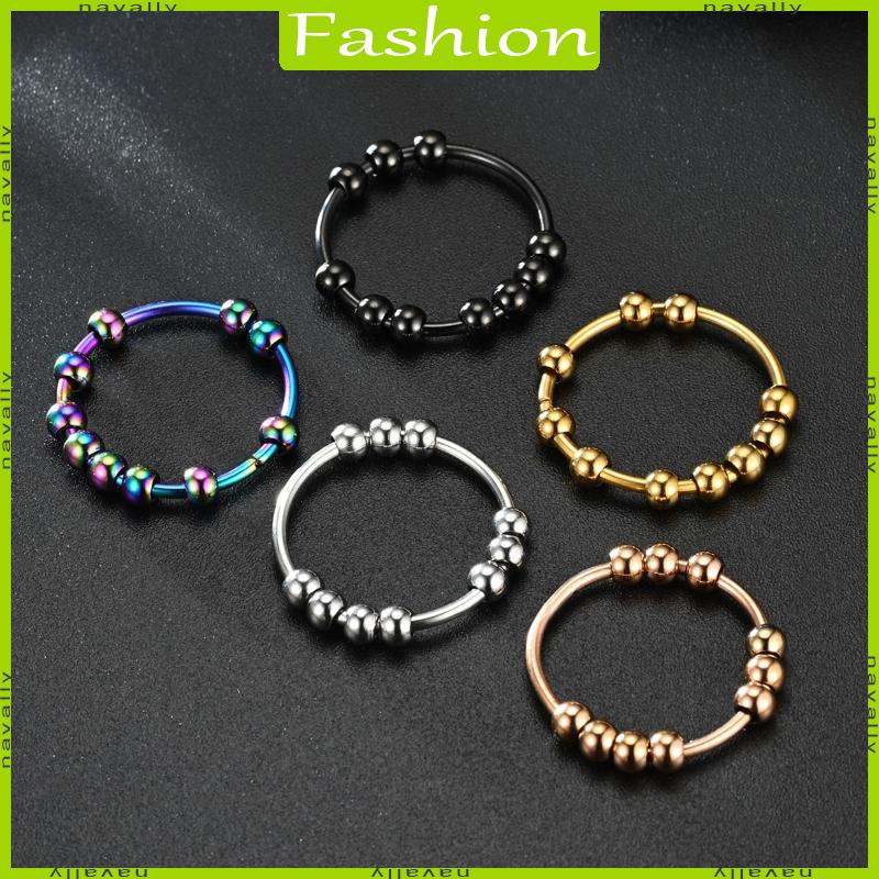 nava Anéis Anti-Ansiedade Coloridos De Contas Fidget-Spinner Preocupação De Dedo Jóias De Aço Inoxidável Anel De Alívio De Estresse
