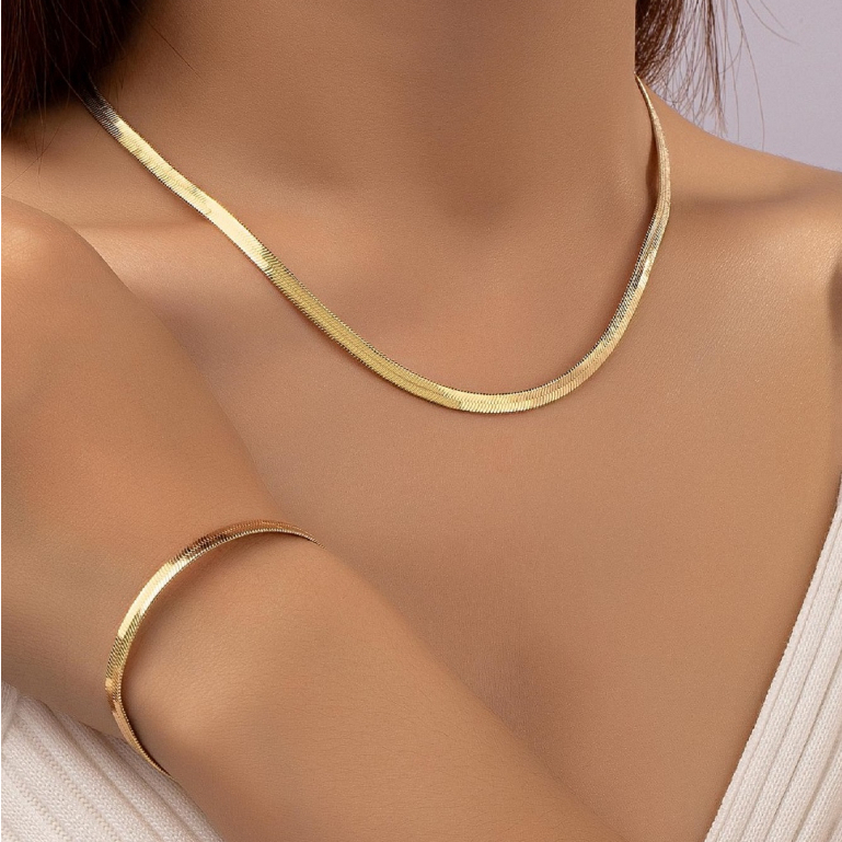 Kit Conjunto Colar Laminado e Pulseira Folheados Banhada a Ouro 18k