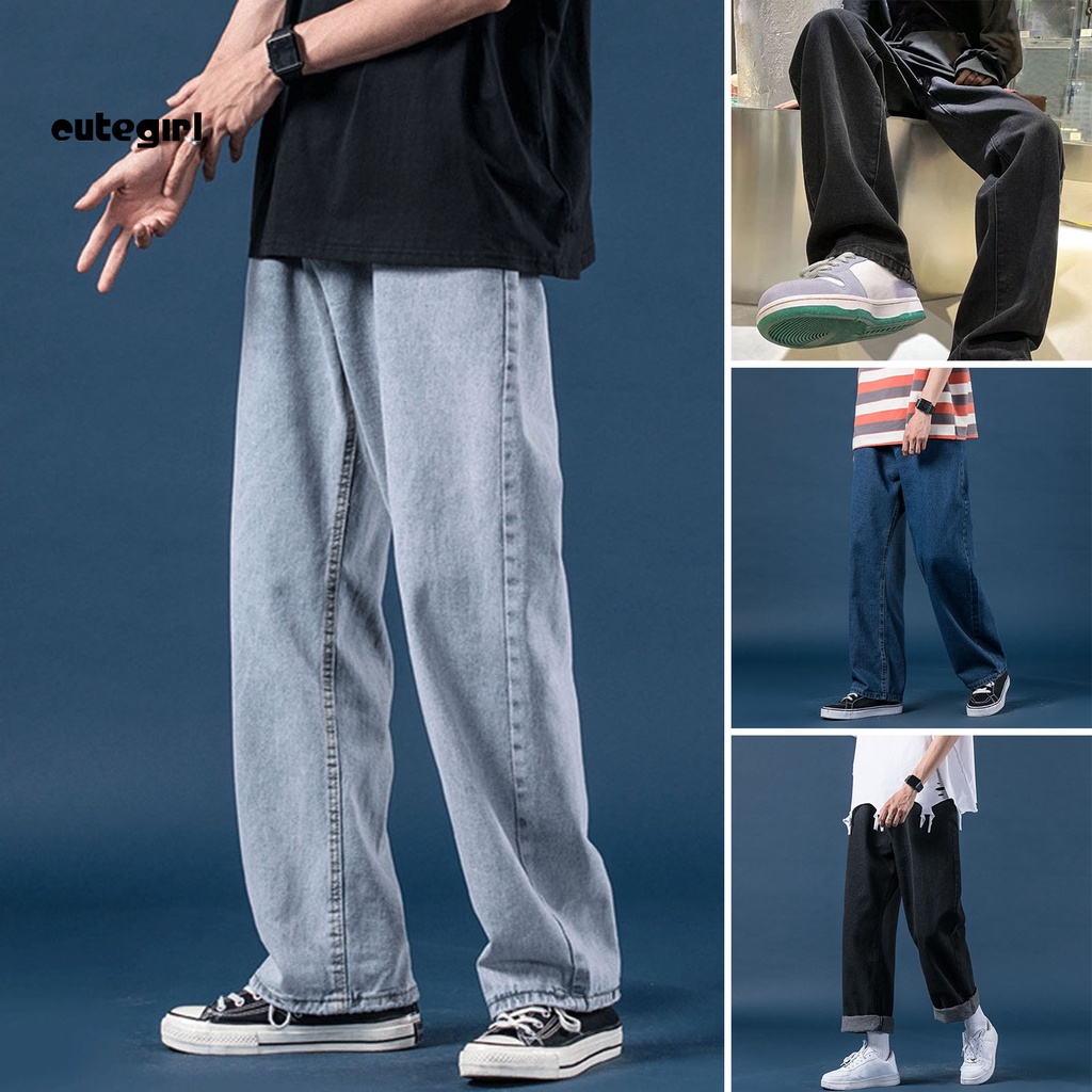 CMN-Men Jeans Reto Cor Sólida Perna Larga Vintage De Comprimento Total Vestido Casual Solto