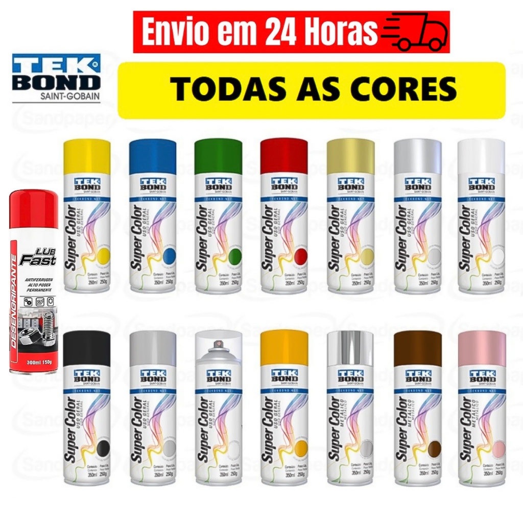 Tinta Spray TEKBOND 350ml 250g Uso geral Metalica Fluorescente Neon Diversas Cores Anticorrosivo Antiferrugem Desingripante Lubfast