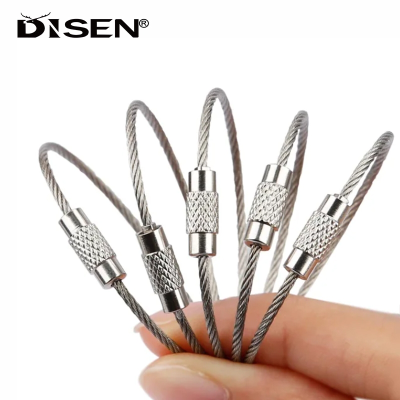 10Pcs Chaveiro De Cabo De Aço Inoxidável Caminhada Ao Ar Livre 110/150/200/250mm