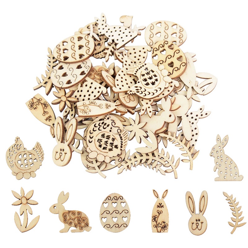 50pcs Ovos De Páscoa Bunny Flower Ornamento De Madeira Não Acabado Fatia Para Decoração De Festas De Mesa