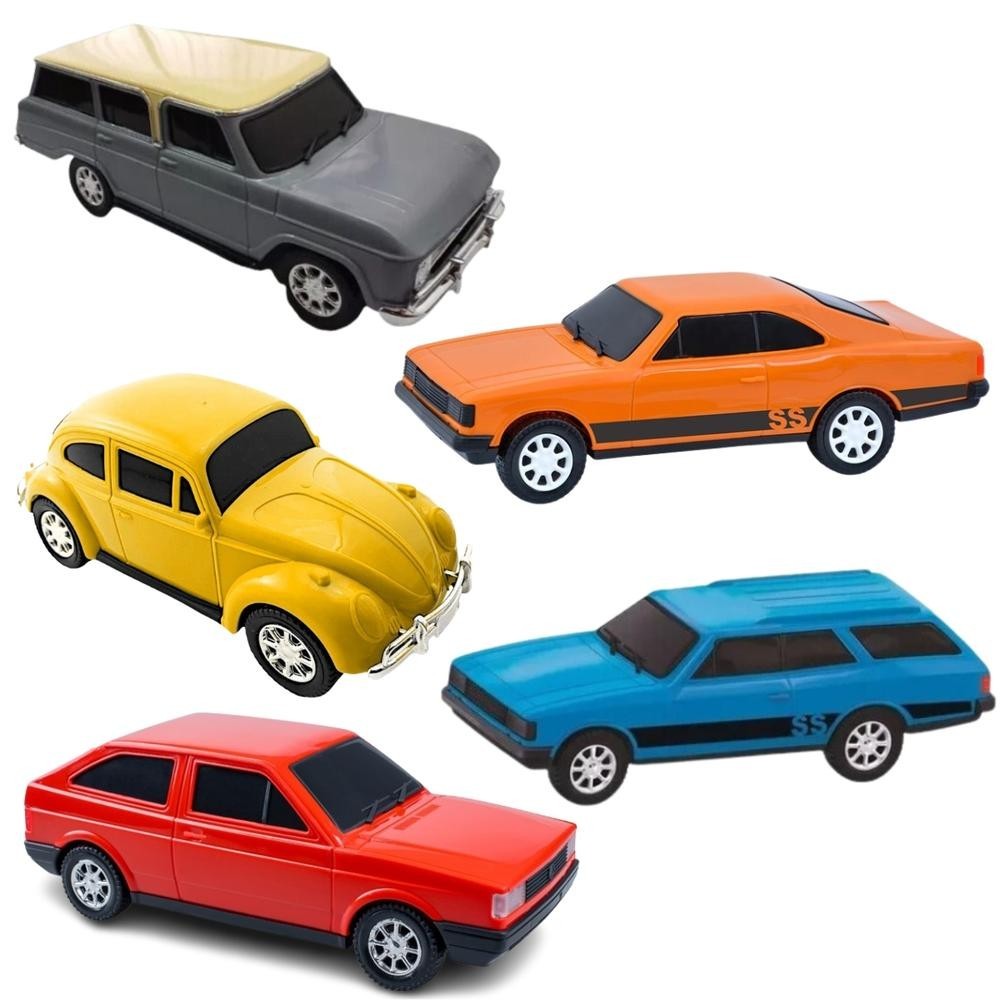 KIT 5 EM 1 - CARROS DE BRINQUEDO FUSCA GOL OPALA CARAVAN VERANEIO DIVERPLAS CARRINHOS MINIATURA