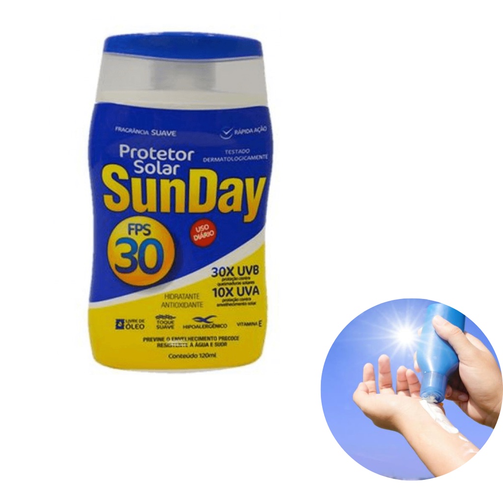 Protetor Solar Sunday FPS 30 Nutriex para Proteção contra Raios UV Rápida Ação Hipoalergênico Fragrância Suave