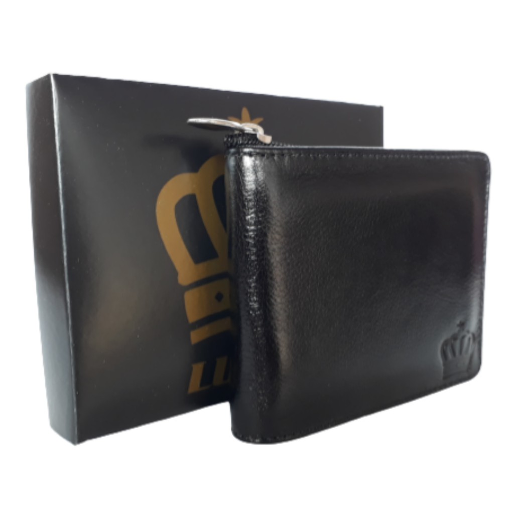 Carteira Masculina de Couro Premium, com 6 Repartições para Cartão, Porta Moedas em Ziper
