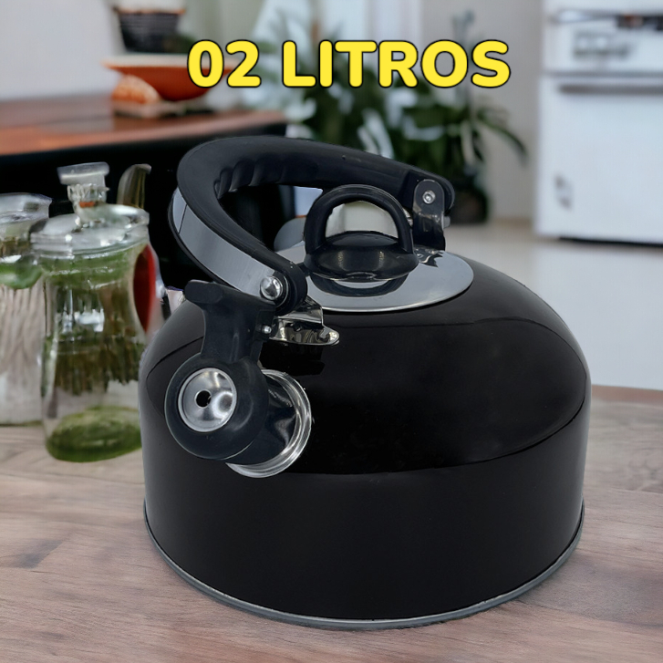 Chaleira Inox Com Tampa de 2 Litros com Apito e Alça Termica Chá Café Bule
