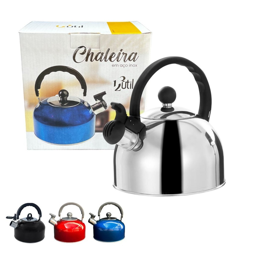 Chaleira De Aço Inox Com Apito 2,5 Litros Tampa E Alça Cozinha