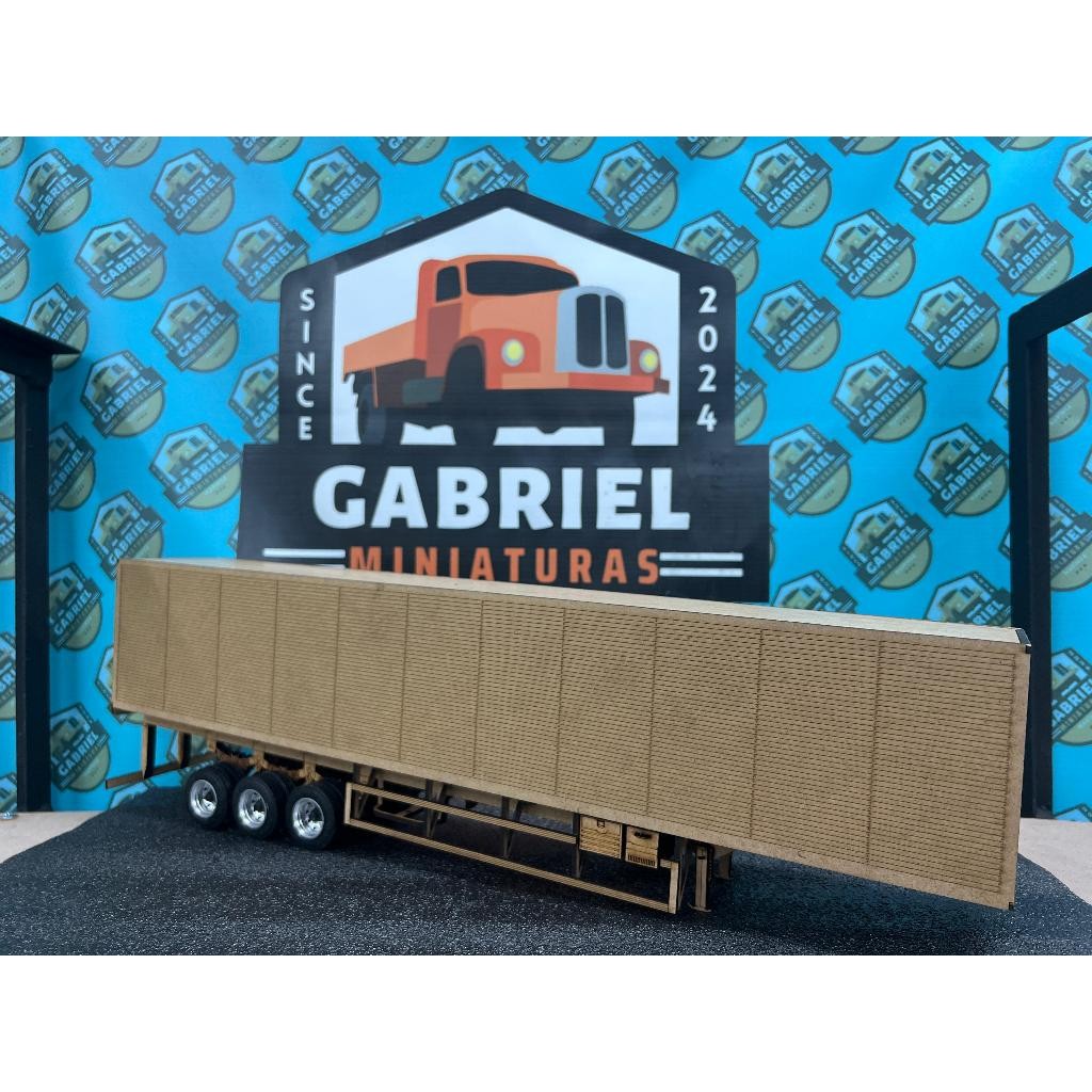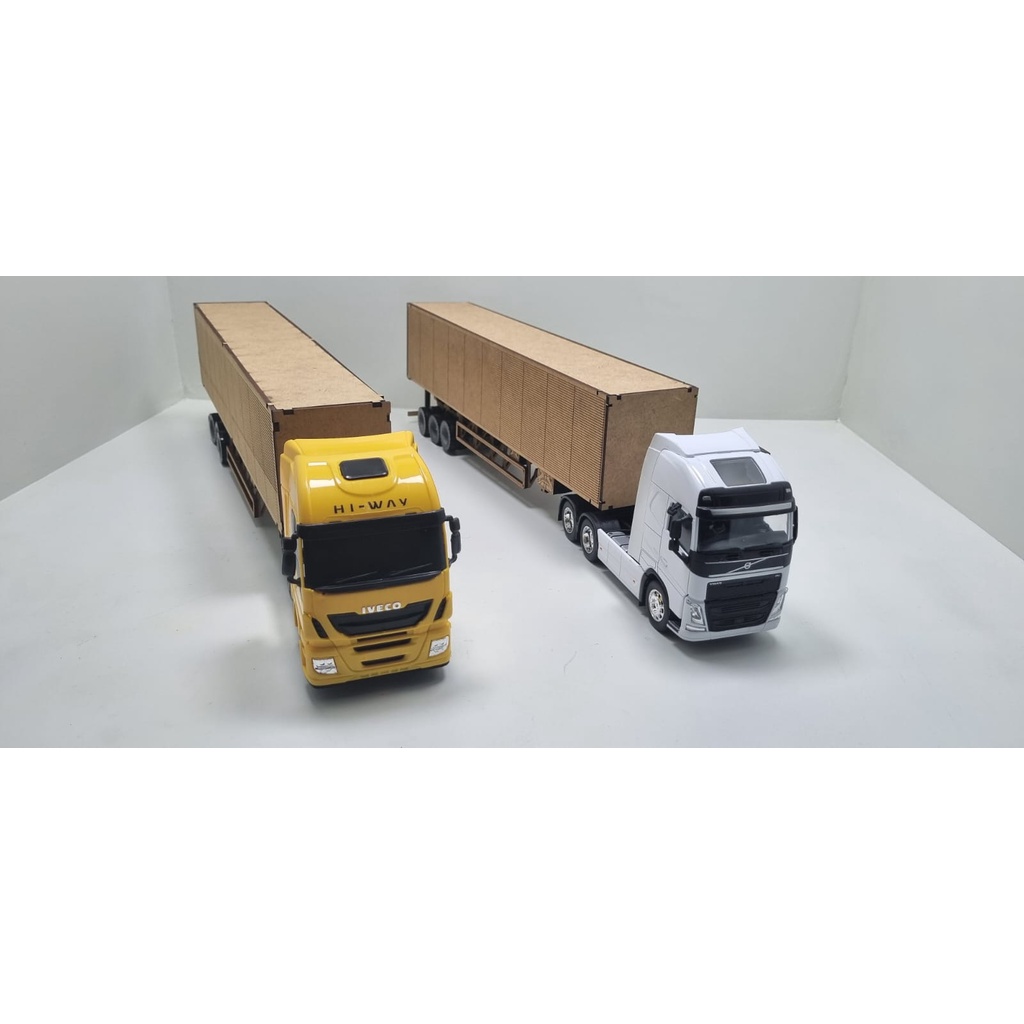 Miniatura Carreta Bau 3 Eixos Escala 1/32 Em Mdf