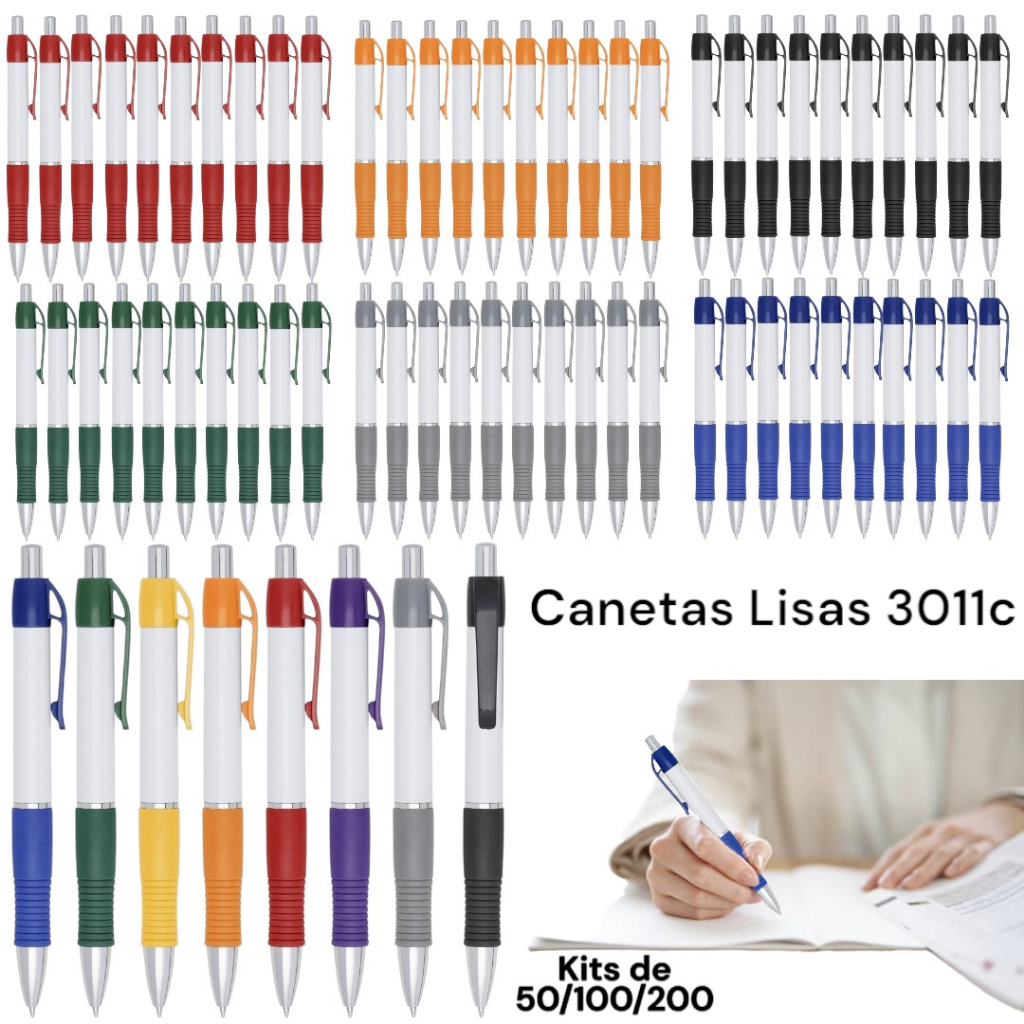 Kit de 50, 100 e 200 Canetas Lisas sem Estampa 3011C para Personalização Silk Transfer Laser