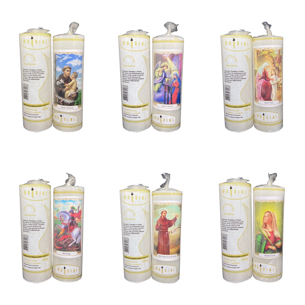 50 Und - Velas De 7 Dias Brancas C/ Santo 100% Parafina Pura 265g