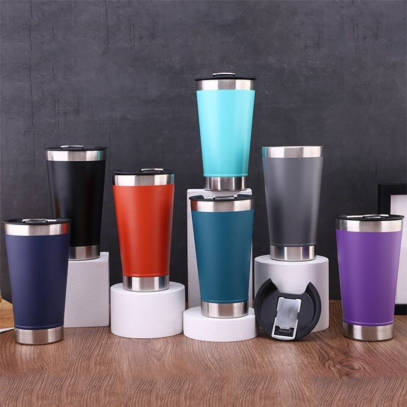 KIT 2 Copos Térmico com Tampa E Abridor 473ml Cerveja Inox Beer Cup Gelada Quente Caneca
