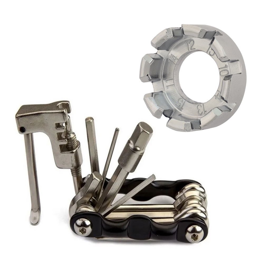 Chave Multiuso 12 Funções + Extrator De Movimento Central Selado Chave Para Bike Mtb + Chave Extrator Saca Gomo Corrente De Bike Speed + Chave De Raio Kenli 8 Medidas Alinhamento Aro Bicicleta Bike