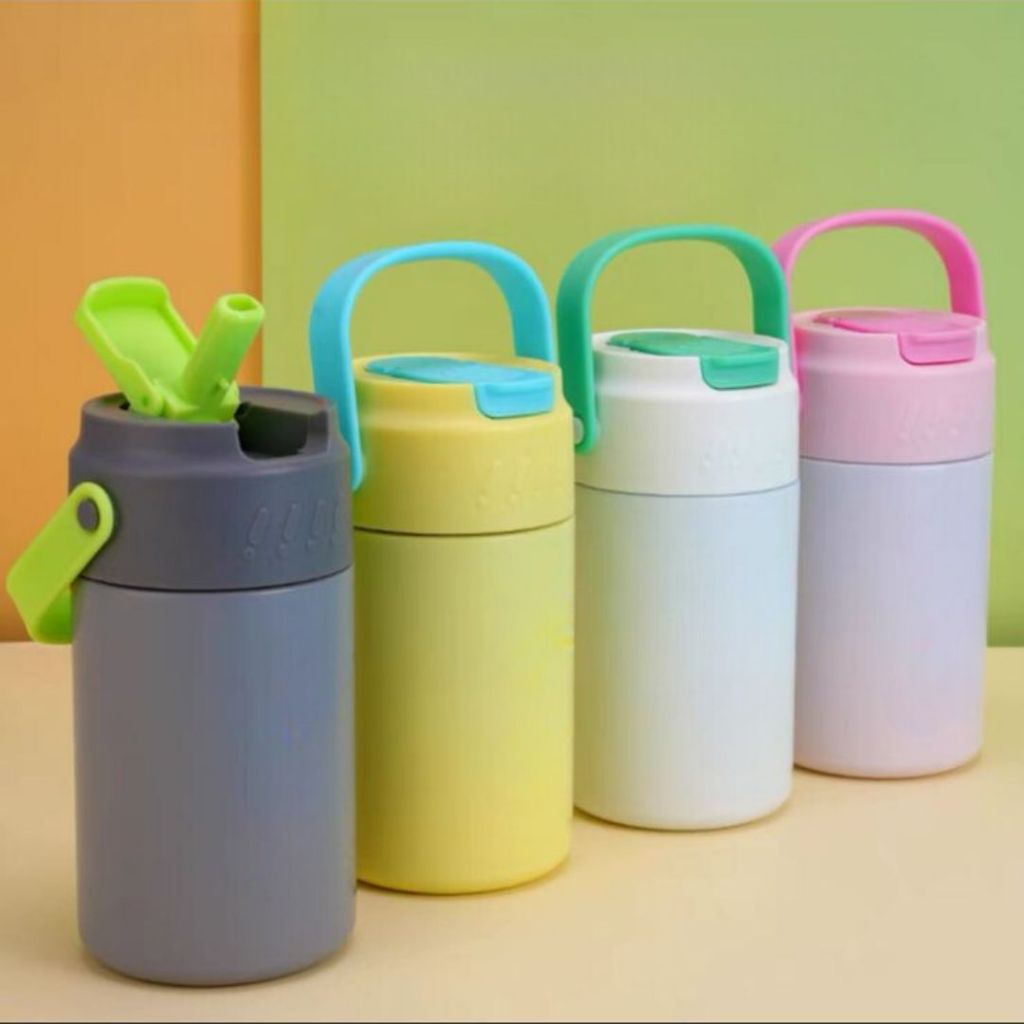 Garrafa Térmica Infantil de 500 ml Aço Inox 304 Com Alça Bolsa De Armazenamento -Canudo e Caneca