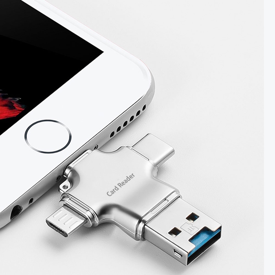 OTG 4 em 1 PenDrive Tipo C Iphone Android PC para qualquer smartphone, unidade de armazenamento externo, pen drive de memória USB 3.0