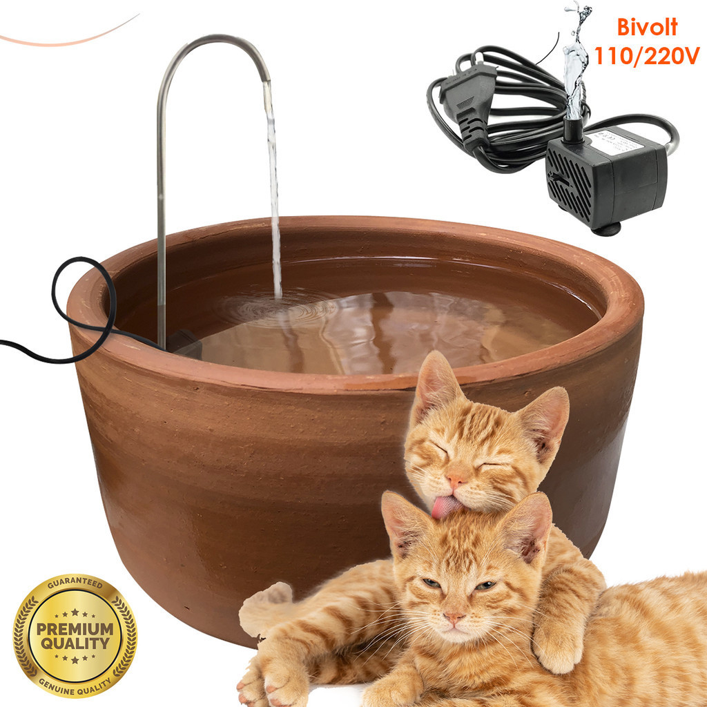 Fonte para Gatos Bebedouro Automático Cachorro Pet de Cerâmica 2 Litros 22 x 11 cm Com Bombinha e Torneira