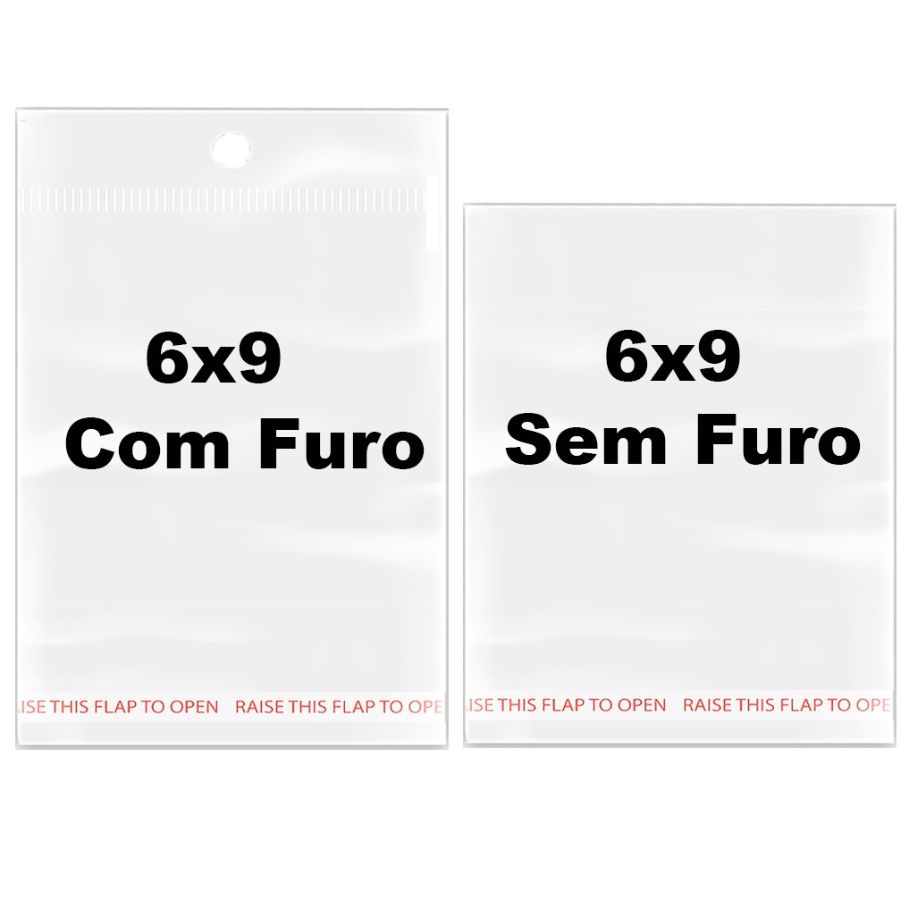 pacote 1000 6x9 +3 cm aba furo sem furo Saco Adesivado 500 Saquinho Transparente Plástico solapa