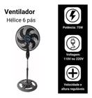 Ventilador chão alto e potente preto com 6 pás de plastico, 48 cm de diâmetro 60 Hz 127 V