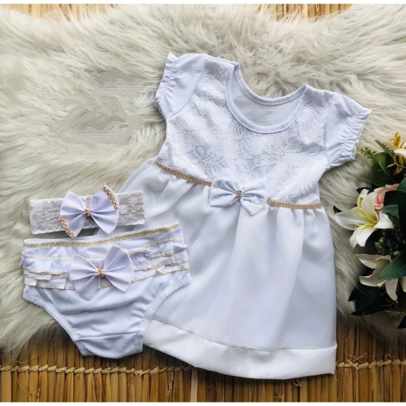 Kit vestido branco de bebê Luxo festa aniversário batizado casamento ano novo