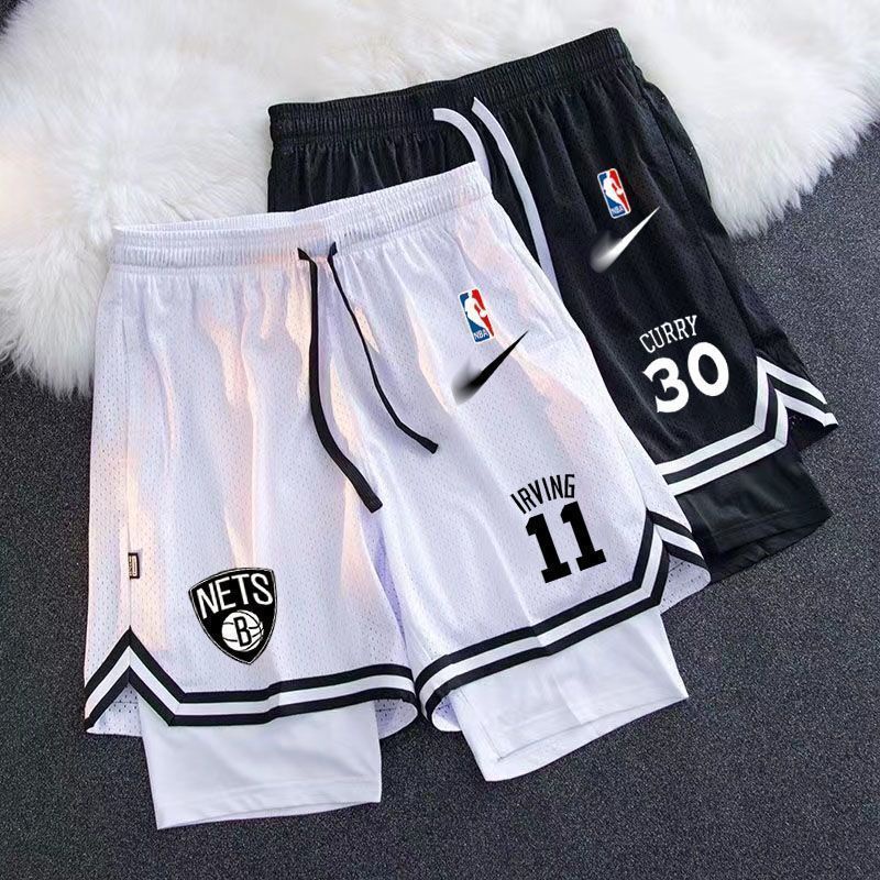Shorts de basquete masculinos da NBA de dupla camada anti-leve soltos de secagem rápida treinamento fitness calças esportivas