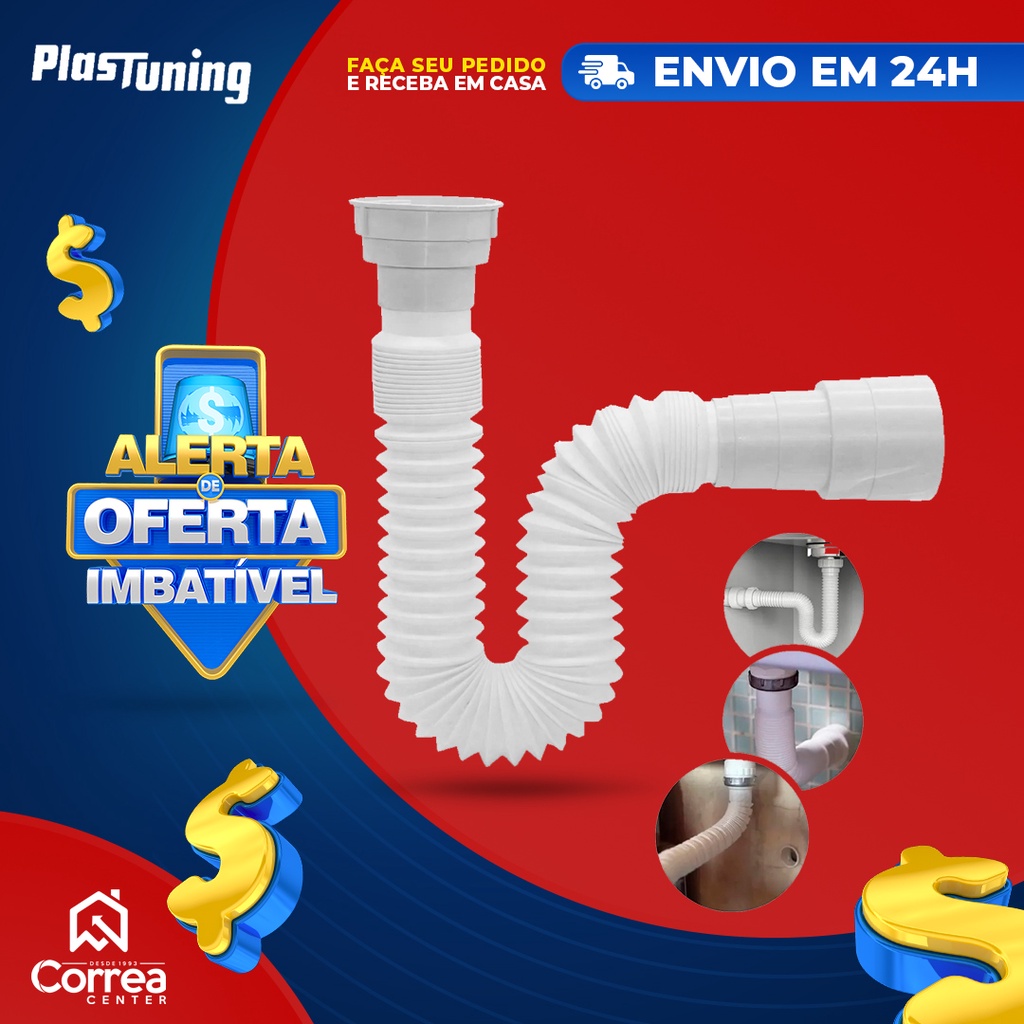Sifão Sanfonado Extensivo Ajustável Universal Multiuso Pia Tanque Lavatório Plastuning