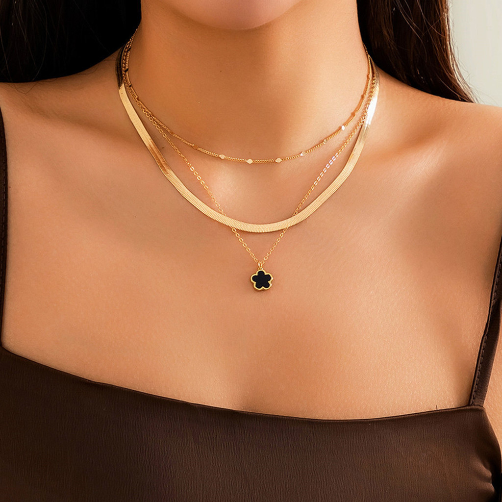 3 Pcs Correntes Separáveis Em Camadas Com Lucky 5 Petal Leaves Pendant Necklace for Women Trendy Charms Choker Collar on Neck Accessories 2024 Fashion Jewelry Female Gifts