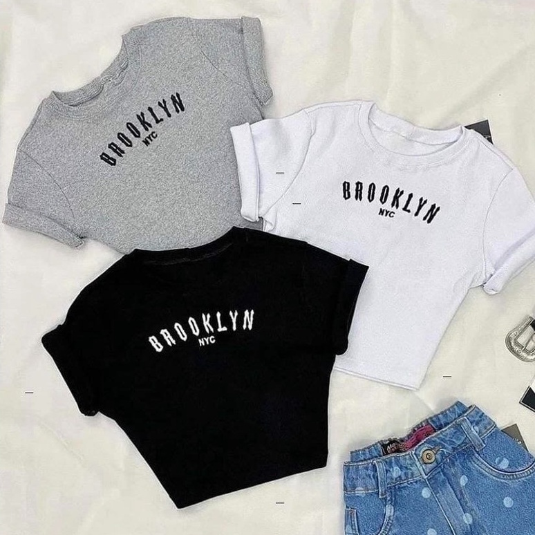 Blusa feminina Cropped bordado T-shirt Brooklyn Várias cores