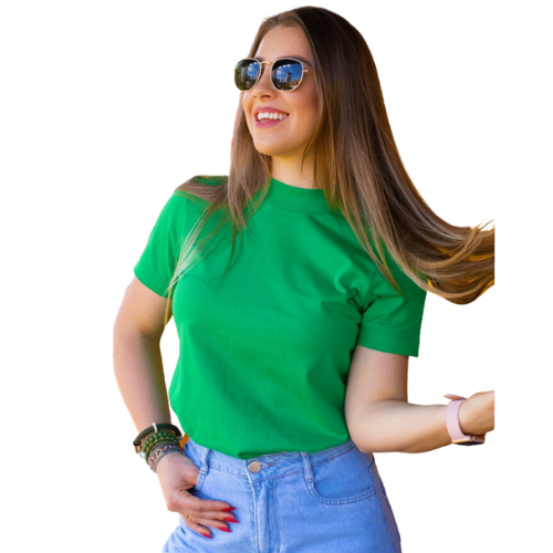 T-Shirt Feminina Gola Alta Blusa Camisa 100% Algodão Várias Cores 2023